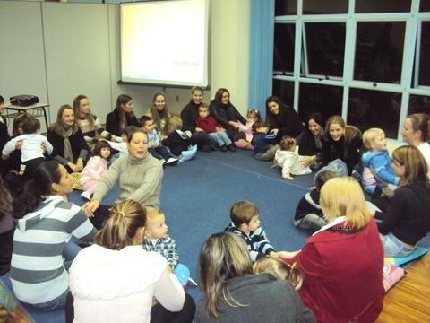 O momento foi organizado pelas professoras Lovimara S. Bandeira Gomes e Mônica Rossi e contou com a participação especial da professora Micheli Andrioli Batista (que convidou as mães para brincarem com algumas canções) e da professora Sandrine Fick Henn (com uma música em Inglês).