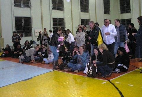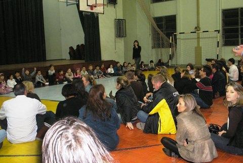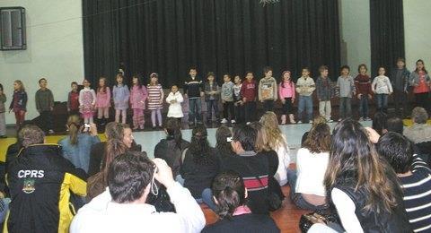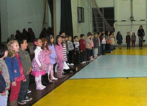 Ao entrarem no Ginásio, as famílias se depararam com a exposição “Retratos de família” (trabalhos artísticos realizados pelos alunos com fotos de família). Após, aconteceu a apresentação de algumas canções que fazem parte das vivências diárias dos alunos e também de outras que foram cantadas especialmente para as famílias. Para esse momento, os estudantes contaram com o apoio da professora de música – Michele Andrioli Batista.