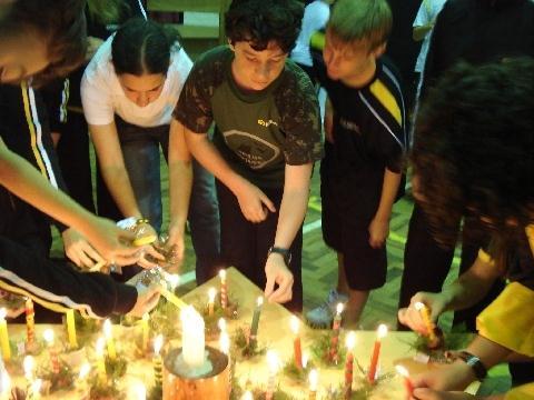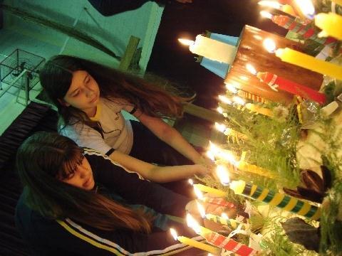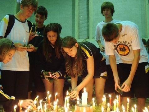 Após, cada aluno acendeu uma vela e a colocou em uma estrela. Segundo o Pastor, a luz das velas simboliza a luz de cada um. As velas foram organizadas pelos alunos durante as aulas de Ensino Religioso e simbolizaram uma das velas da coroa de advento.