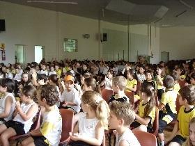 Durante a atividade, o Pastor Adam, juntamente com a professora de Canto da IENH – Michele Andrioli Batista, cantaram algumas músicas com os estudantes.