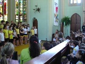 Além disso, os alunos das 3as séries do Ensino Fundamental cantaram diversas músicas, como: Vida, “Thank you lord” e “I´m really happy”.