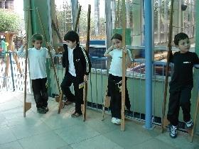 A atividade teve como objetivos trabalhar o equilíbrio dos alunos e os brinquedos folclóricos. Durante a aula, o professor ensinou os alunos como subir e como andar nas “pernas de pau”.