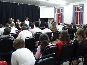 No dia 19/09, o Grêmio Estudantil Castro Alves – GECA da IENH – Unidade Fundação Evangélica promoveu reunião com os alunos da Unidade sobre o Projeto de Meio Ambiente. A atividade contou com a presença de cerca de 70 alunos da 6ª série do Ensino Fundamental até a 3ª série do Ensino Médio. A reunião ocorreu a partir das 10h30min, na Sala de Conferências da Unidade.