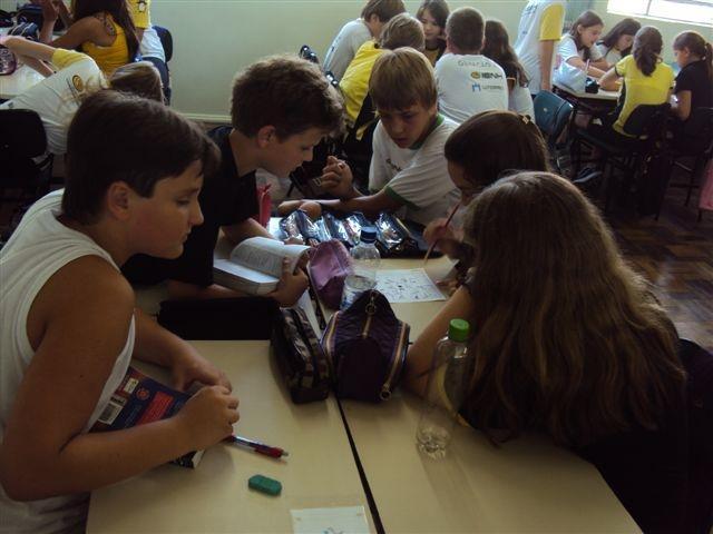 As professoras elaboraram uma gincana onde os alunos precisavam encontrar as agendas de 2012, charadas para descobrir os horários de cada turma para 2012 e outras atividades de integração.
