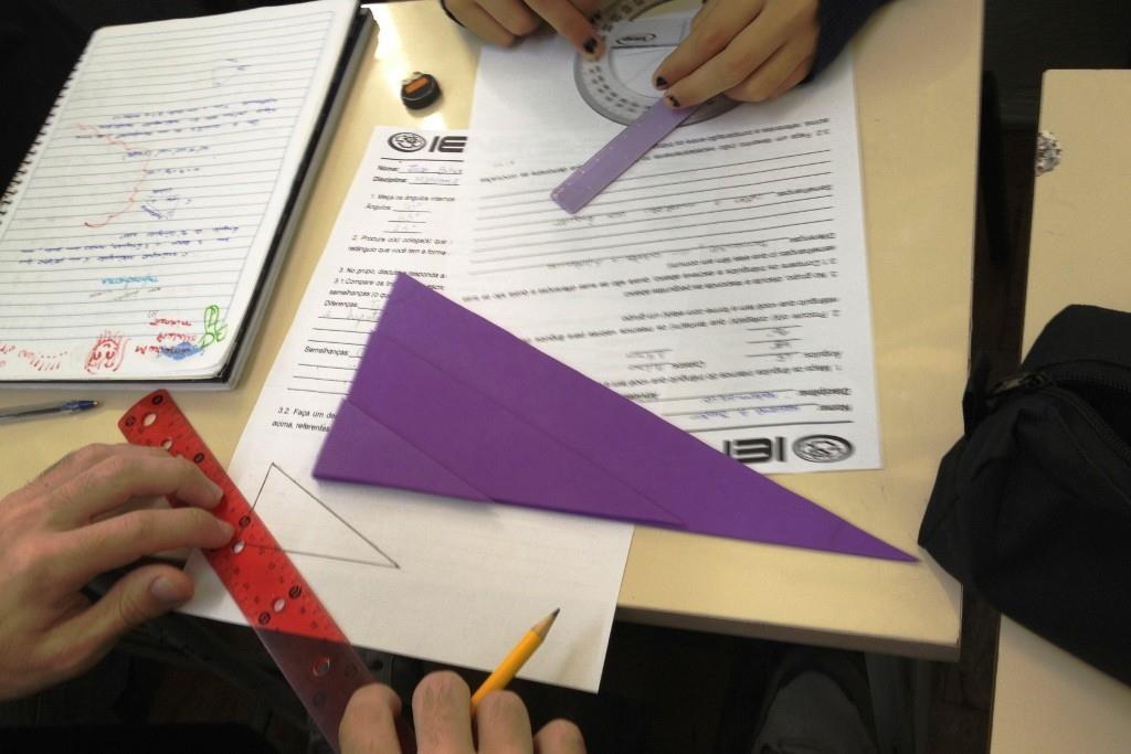 Em sala de aula, os alunos relembraram, por meio da semelhança de triângulos, as razões trigonométricas. E no pátio, os estudantes foram desafiados a medir a altura de três objetos para depois, por meio da razão trigonométrica conveniente, determinar a sua altura. A atividade foi desenvolvida por meio de um instrumento produzido por eles, o astrolábio, que mede ângulos de subida da visão, a altura.