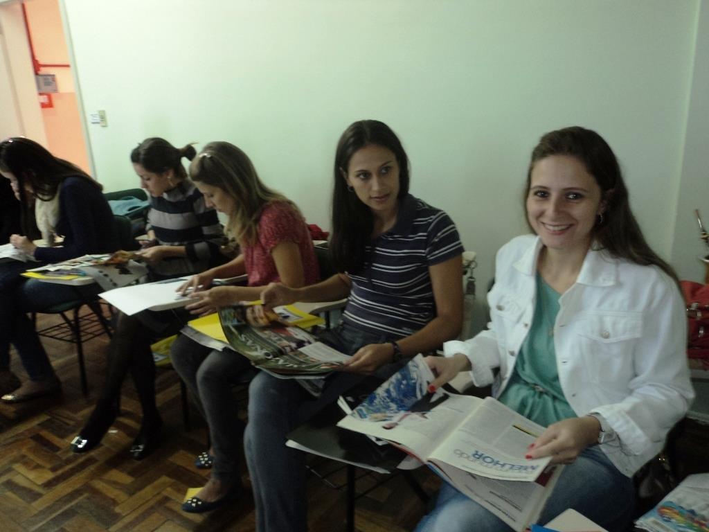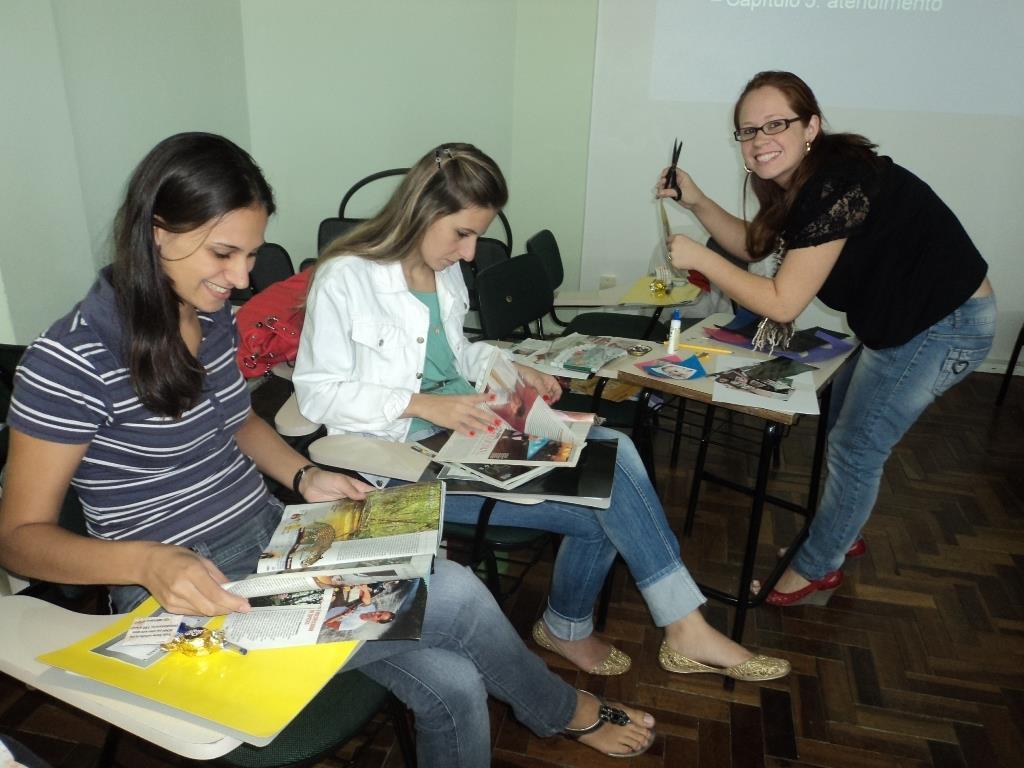 No início das atividades foram feitas dinâmicas de apresentação e integração. Depois, as auxiliares desenvolveram capítulos de uma fanzine (revista criada com colagem de materiais diversos), divididas em grupos, e com focos em situações e espaços de trabalho.