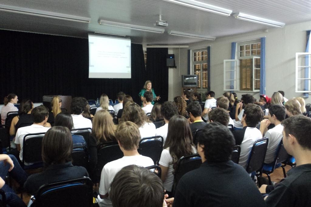 Dia 10 de abril, os estudantes das 2ªs e 3ªs séries do Ensino Médio da IENH – Unidade Fundação Evangélica participaram de uma palestra ministrada pela Coordenadora do Curso Gestão de Inovação e Liderança da Unisinos – Cristiane Rabello. O momento foi organizado pelo Serviço de Psicologia da IENH.