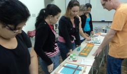 As alunas do Curso Normal – Formação de Professores participaram de uma aula diferenciada de Matemática na noite de 11 de abril. A turma utilizou jogos educativos que possibilitam desenvolver a área da percepção e da cognição nos alunos de diferentes níveis no processo de ensino aprendizagem da Matemática.