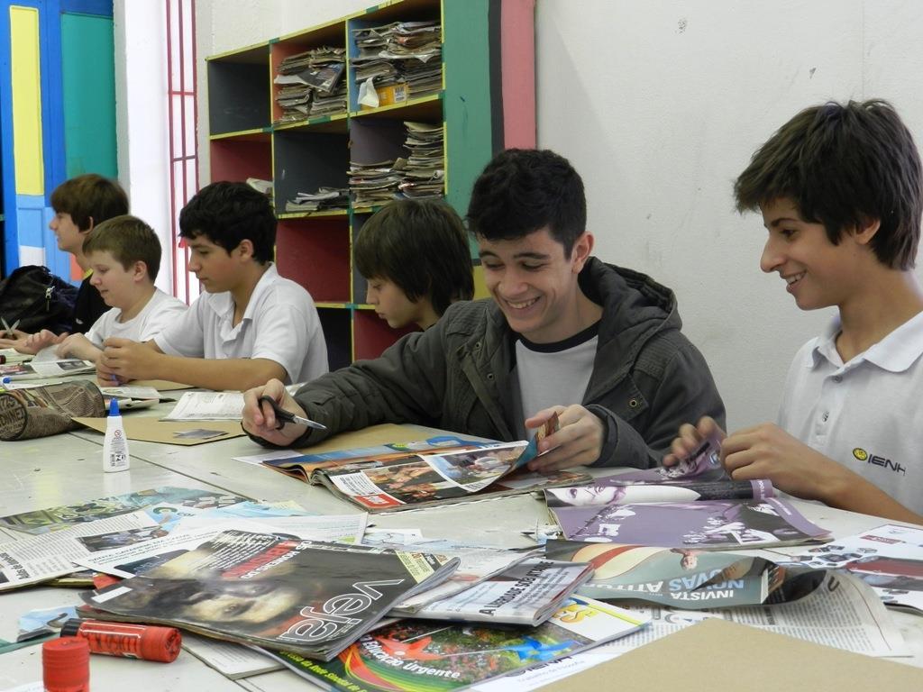 Estudantes da IENH – Unidade Fundação Evangélica participaram de uma atividade referente às escolhas profissionais e pessoais. As turmas das 8ªs séries recortaram ilustrações de coisas que gostam como: doces, carros, aparelhos eletrônicos, esportes e livros.