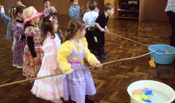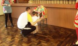 No salão, a festa continuou com pipoca, pinhão, rapadura, bolo, cachorro-quente, docinho, suco de uva e refrigerante. No circuito de brincadeiras teve rabo do burro, pescaria, batata na colher e bola na boca do palhaço. Todos brincaram e ganharam brindes pela participação.