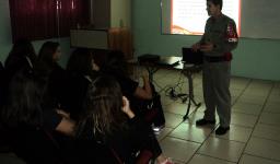 O objetivo da visita foi discutir o papel do bombeiro na segurança. A turma teve a oportunidade de ter uma aula sobre o trabalho destes profissionais, além de conhecer técnicas de segurança em relação ao fogo, materiais inflamáveis e o uso de extintores. O grupo foi recebido pelo Soldado Guadalupe que também deu demonstrações de primeiros socorros.