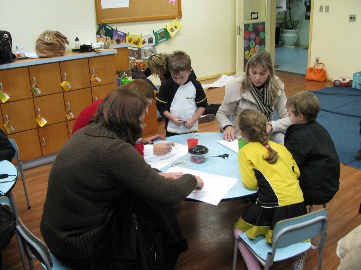 Para finalizar foi realizada uma atividade em conjunto onde, utilizando um pedaço de barbante com o comprimento de algum adulto da família, as famílias deveriam criar algo utilizando cola, canetinha ou giz de cera.