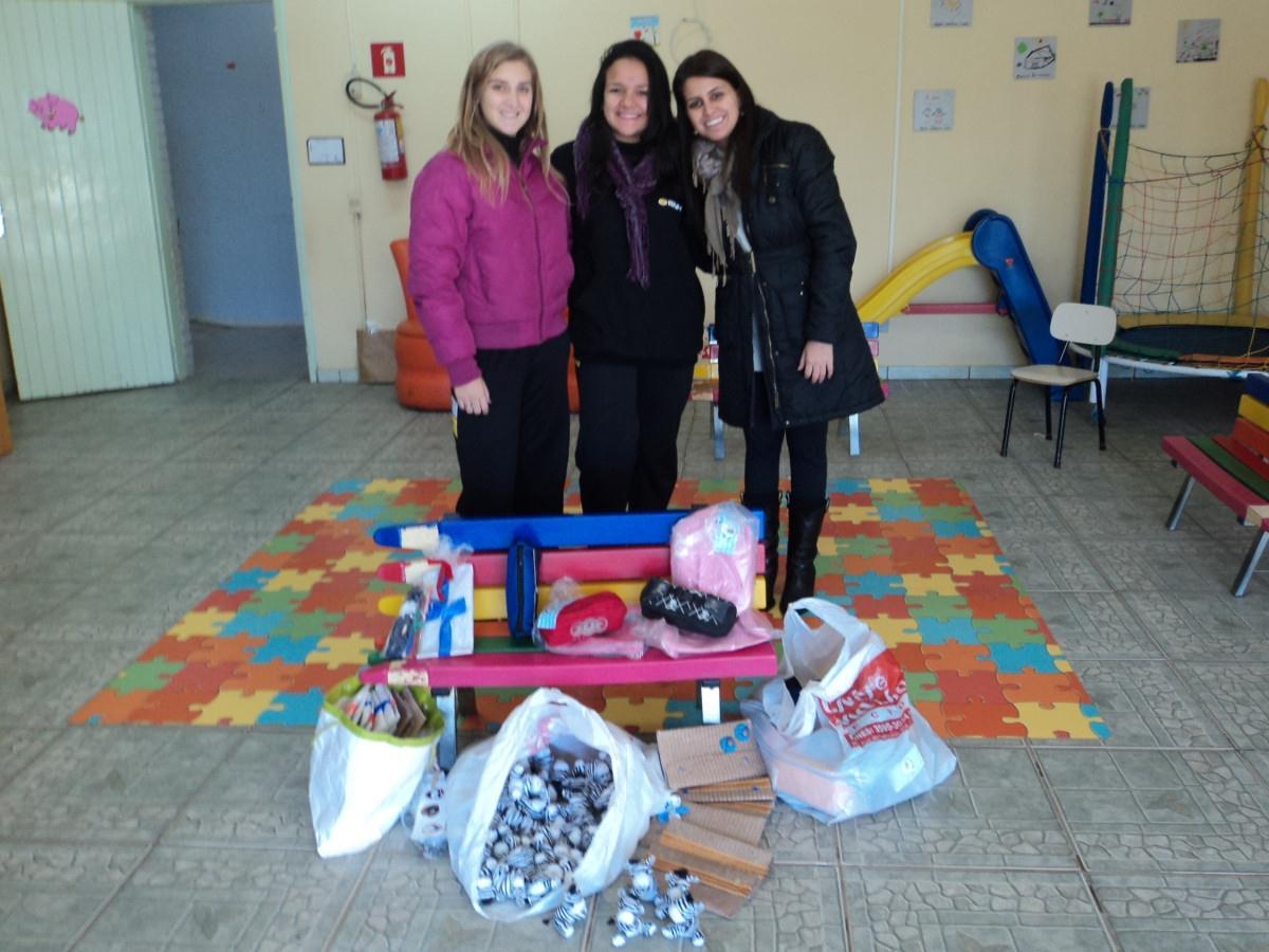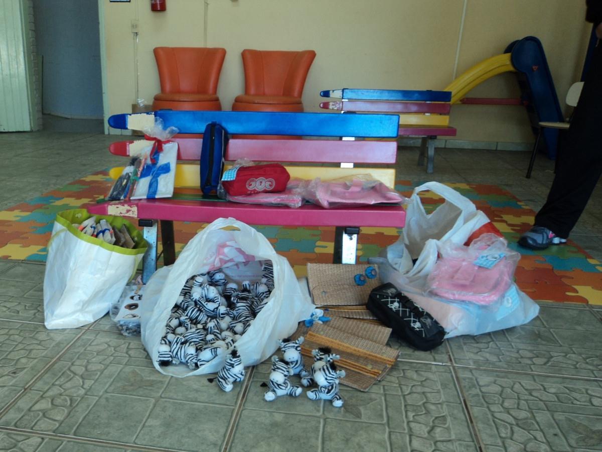 No mesmo momento também foi realizada a entrega de mochilas, estojos e outros materiais escolares doados pela Livraria Nativu’s, assim como carteiras, bonecas, chaveiros e fuxicos confeccionados pelos estudantes da IENH na Oficina do Brinquedo.