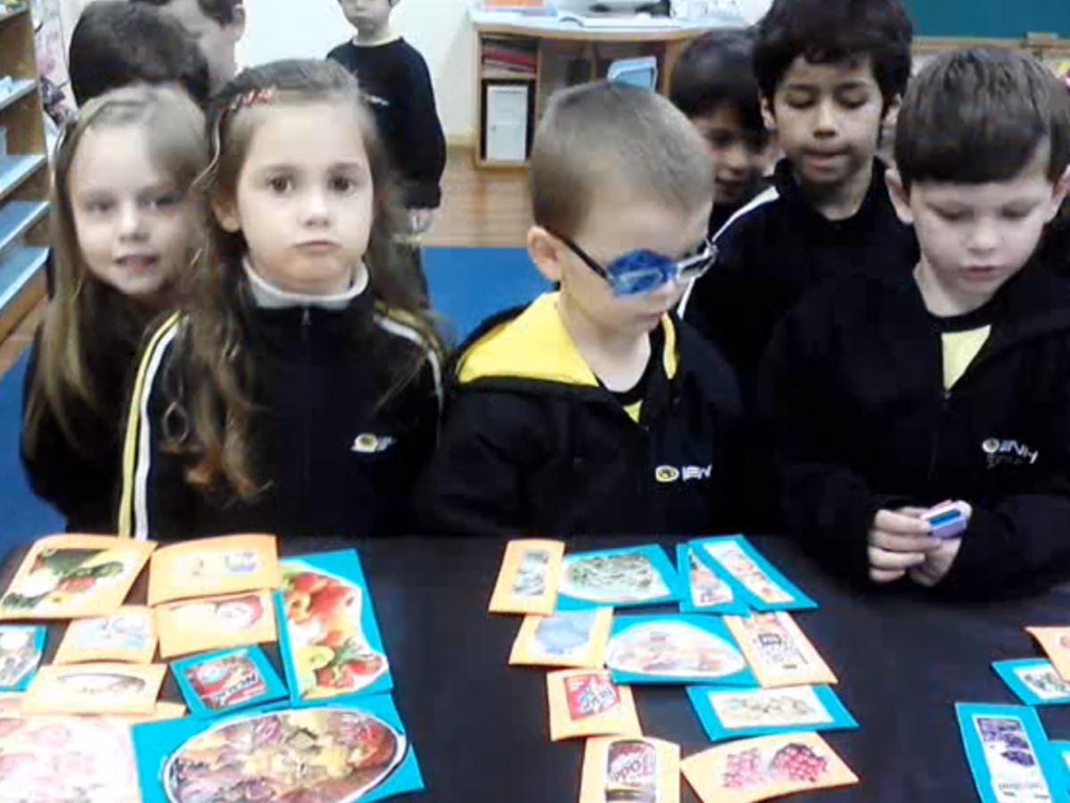Brincando de mercado, a turma pôde fixar vocábulos relacionados a comidas em Inglês, assim como ter a vivência de vender e comprar os alimentos, utilizando frases relacionadas ao tema e utilizando dinheiro criado por eles, somando e dando troco quando necessário.