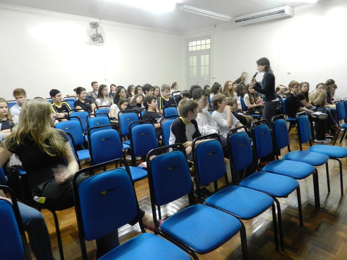 Assim, na tarde de 02 de agosto, a Psicóloga do Ensino Médio – Renata Roos e o Professor de Sociologia – Daniel Gewehr palestraram sobre o tema: medo. Daniel trouxe personagens históricos como Adolf Hitler e Átila Rei dos Hunos. “Não recebemos um manual ao nascer que esclarece como se deve viver em um mundo com medo. Ele está presente na história e é utilizado pelo ser humano para comandar e atemorizar”, explica o Professor.