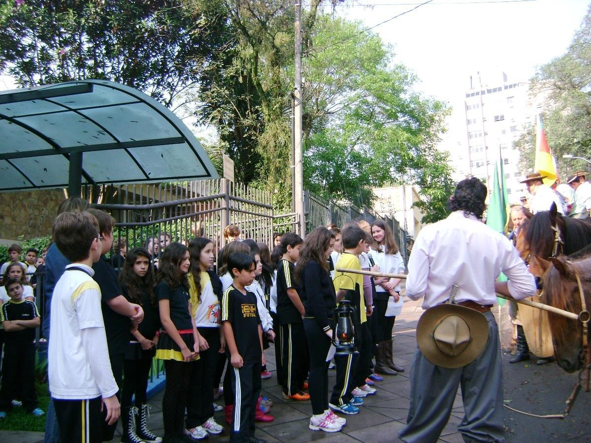 A chegada dos participantes foi aguardada com ansiedade pelos estudantes. Algumas turmas preparam homenagens aos cavalarianos, o Hino Nacional foi cantado por todos e na Fundação Evangélica o estudante Luiz Felipe Schmidt Birk executou o Hino do Rio Grande do Sul no violino e entre canções e poesias, o momento permitiu a valorização da cultura gaúcha e reforçou o tradicionalismo.
