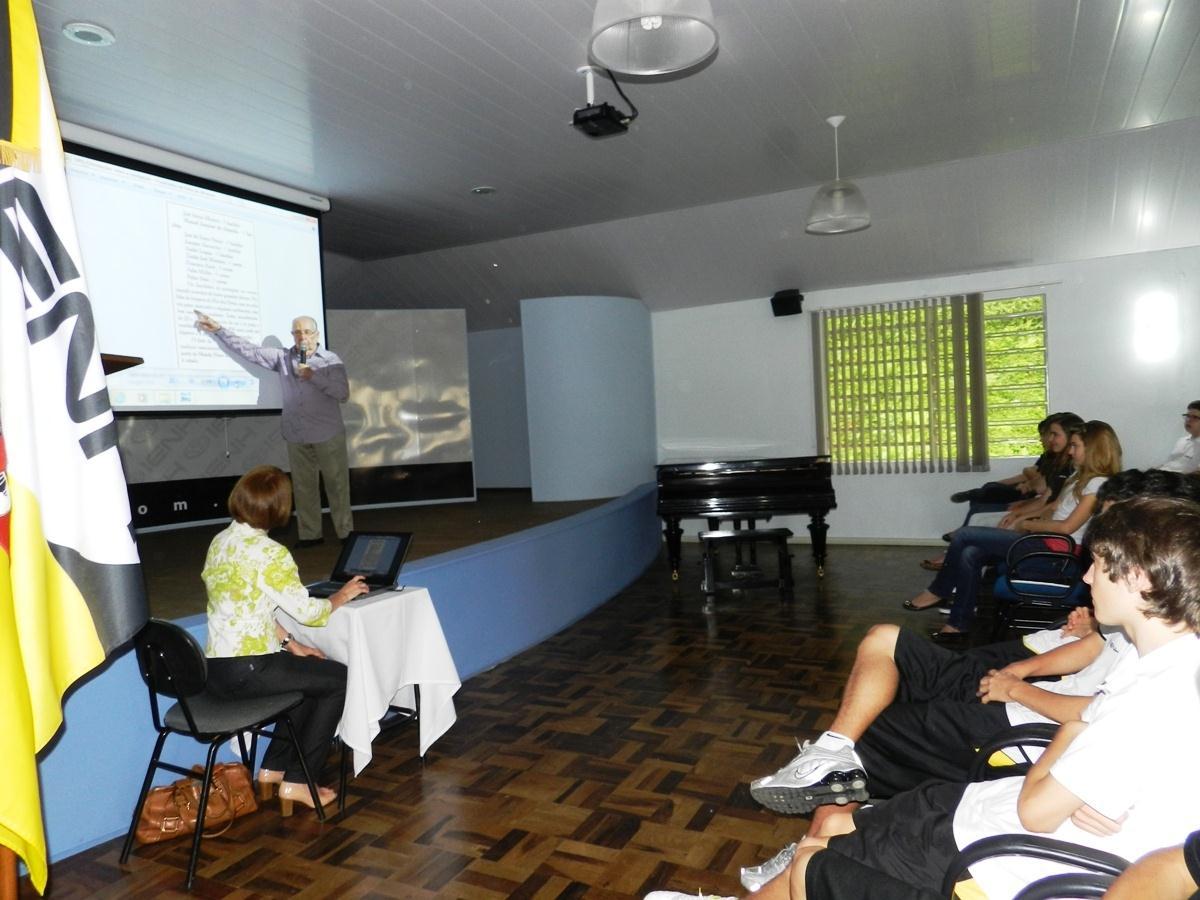 O grupo assistiu a uma palestra com o colunista e diretor fotográfico do Jornal NH e mais antigo repórter fotográfico do Rio Grande do Sul – Alceu Feijó, que falou sobre as suas experiências com o Rio, registrando matérias e fotografias desde 1949.