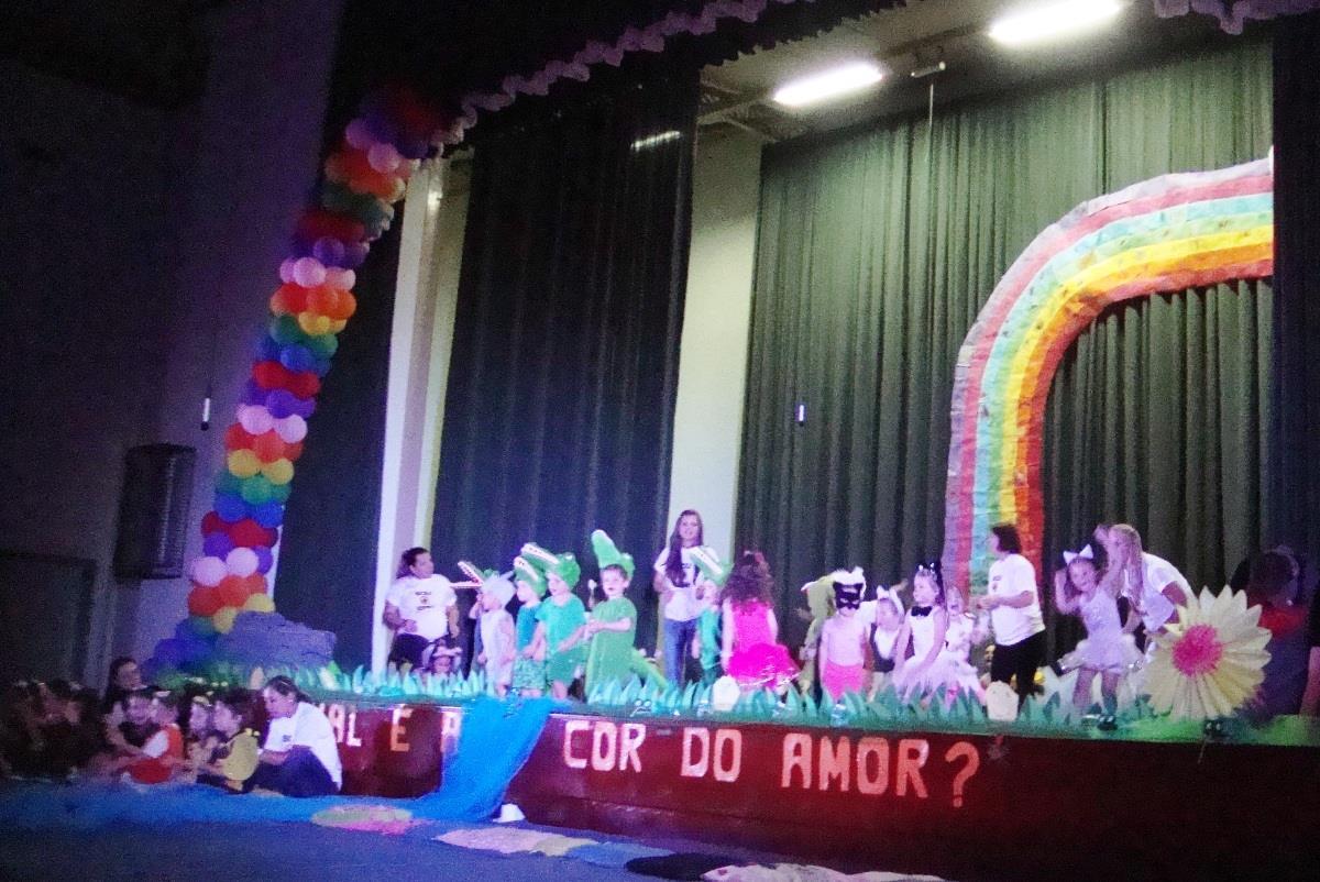 A primeira noite contou com as apresentações dos estudantes do Nível 02 e do Nível 03 que apresentaram o tema: “Qual é a cor do amor?”, baseados no livro de Linda Strachan e David Wojtowycz.