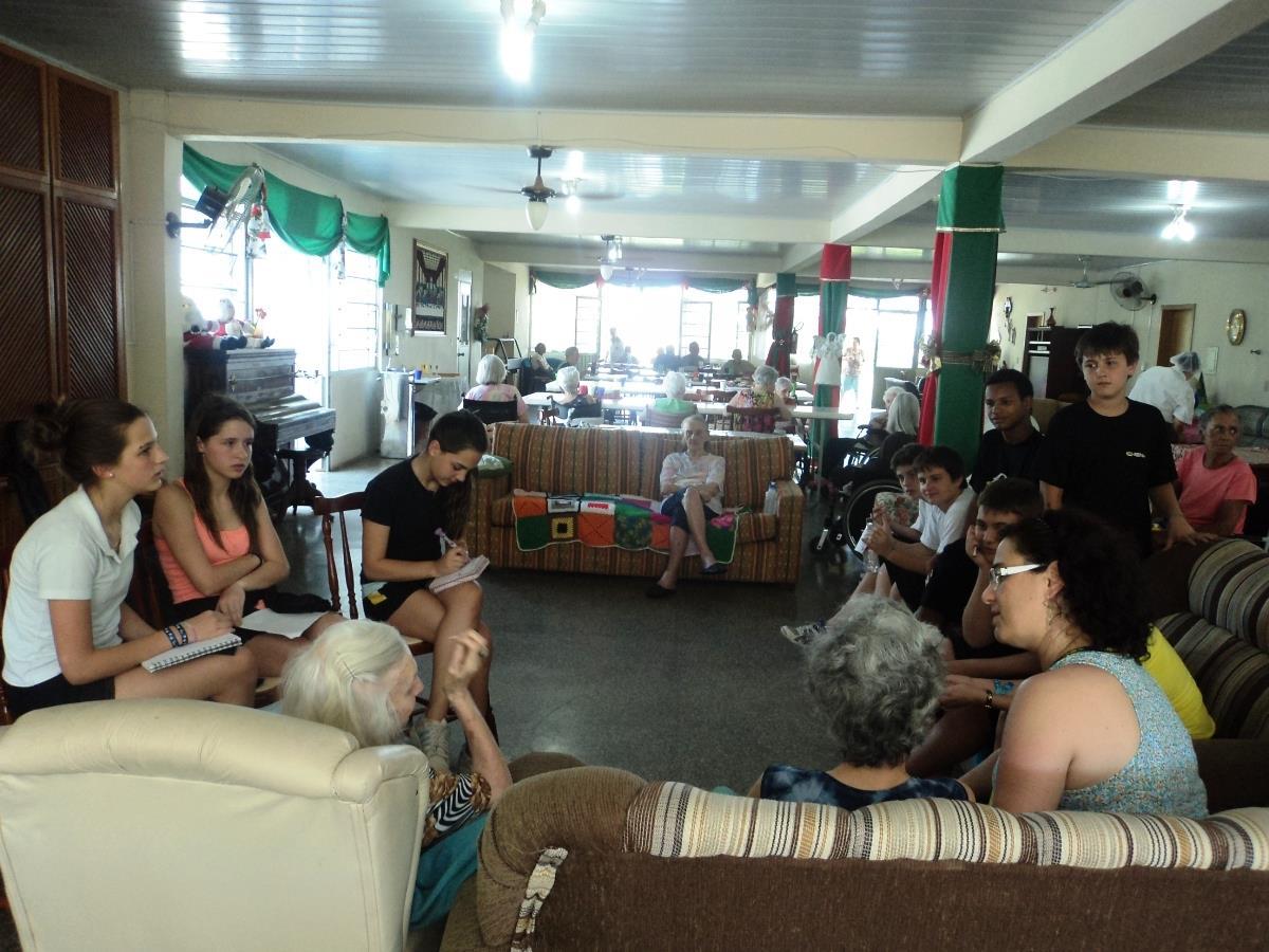 Foi ótimo, mas também é triste. Falei com vários idosos e as histórias deles emocionam muito, dá até vontade de chorar. Foi uma experiência legal e eles parecem ter gostado bastante de falar com a gente.