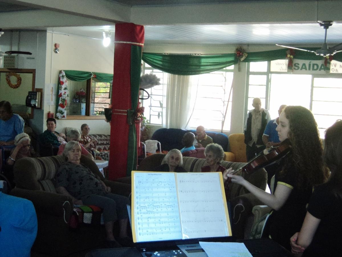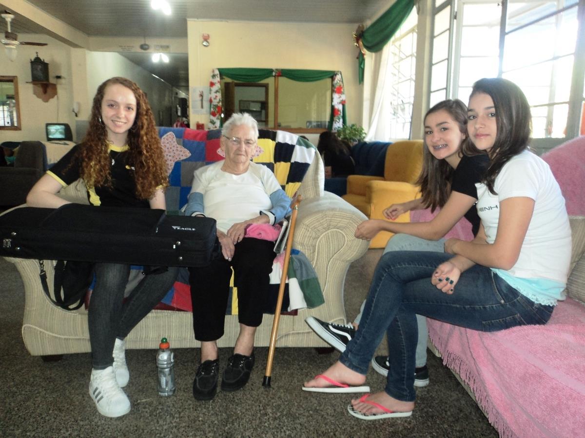 Quando chegamos eles não queriam conversar muito, mas aos poucos foram se acostumando com a gente. Toquei violino para eles, primeiro em pequenos grupos, depois em uma apresentação geral. Um dos idosos, o nome dele era Adão, se emocionou muito e sempre pedia para eu tocar de novo. Na despedida ele começou a chorar e eu também acabei chorando. A realidade deles é muito triste. Ver a felicidade com que eles recebem as visitas nos emocionou e ficamos com a sensação de que precisamos e vamos voltar, já estamos programando isso.