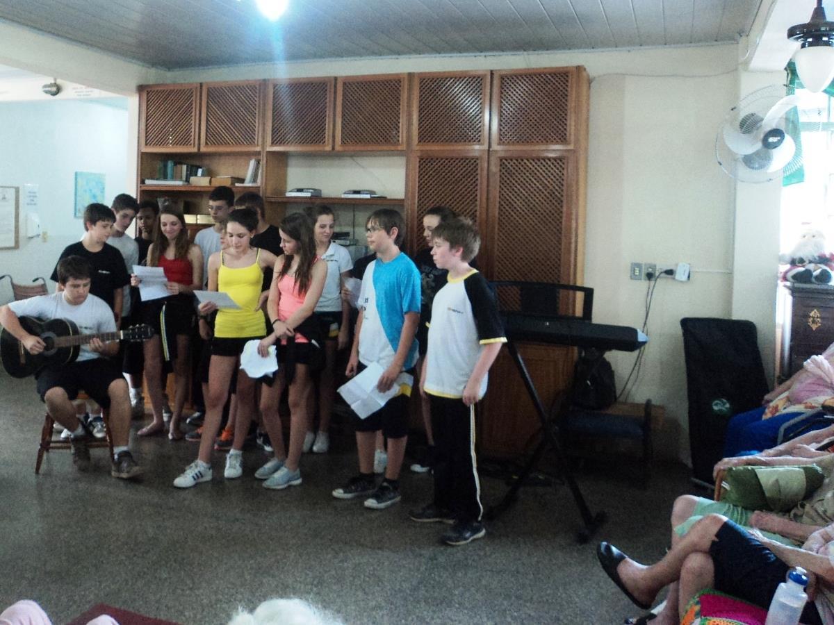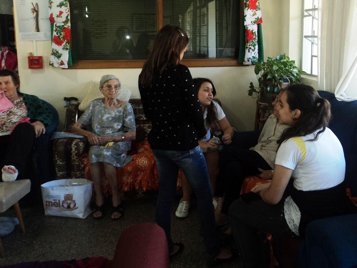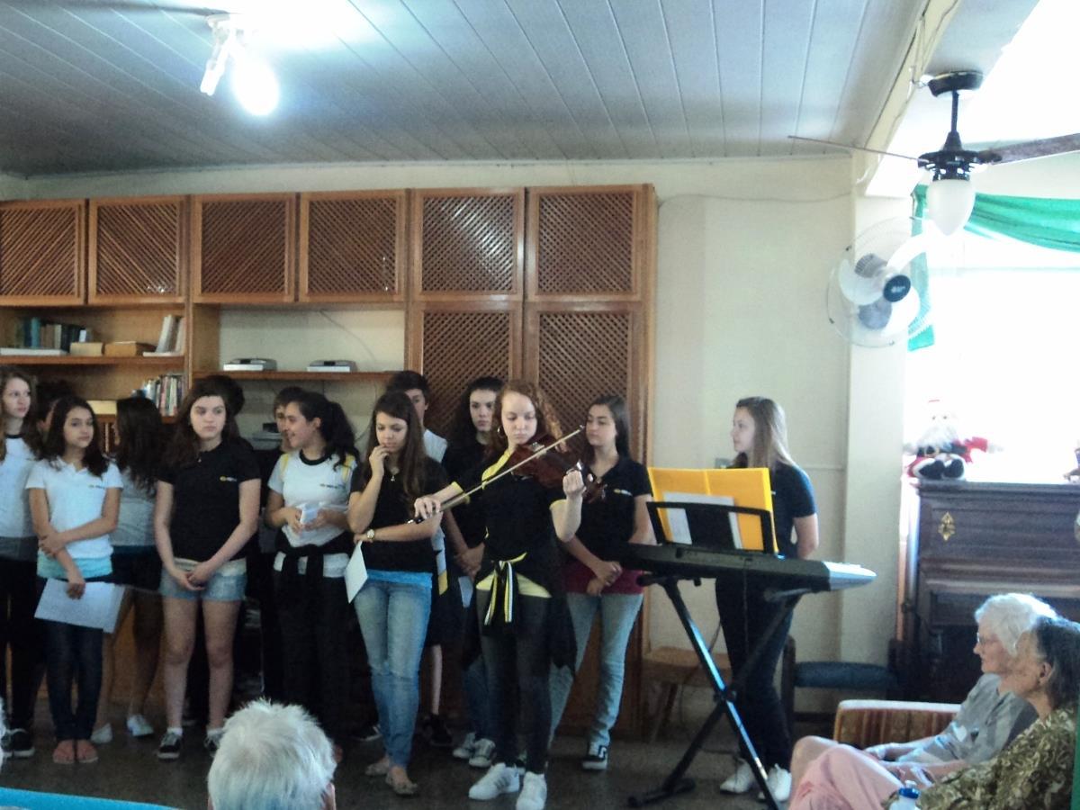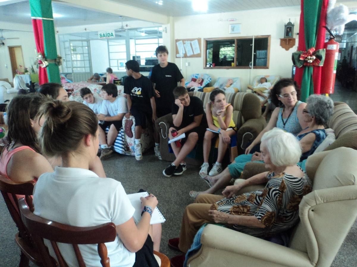 Os estudantes também se envolveram na organização dos momentos, preparando diversas atividades. No Lar São Vicente eles conversaram, cantaram, declamaram poesias e tocaram instrumentos para os idosos.