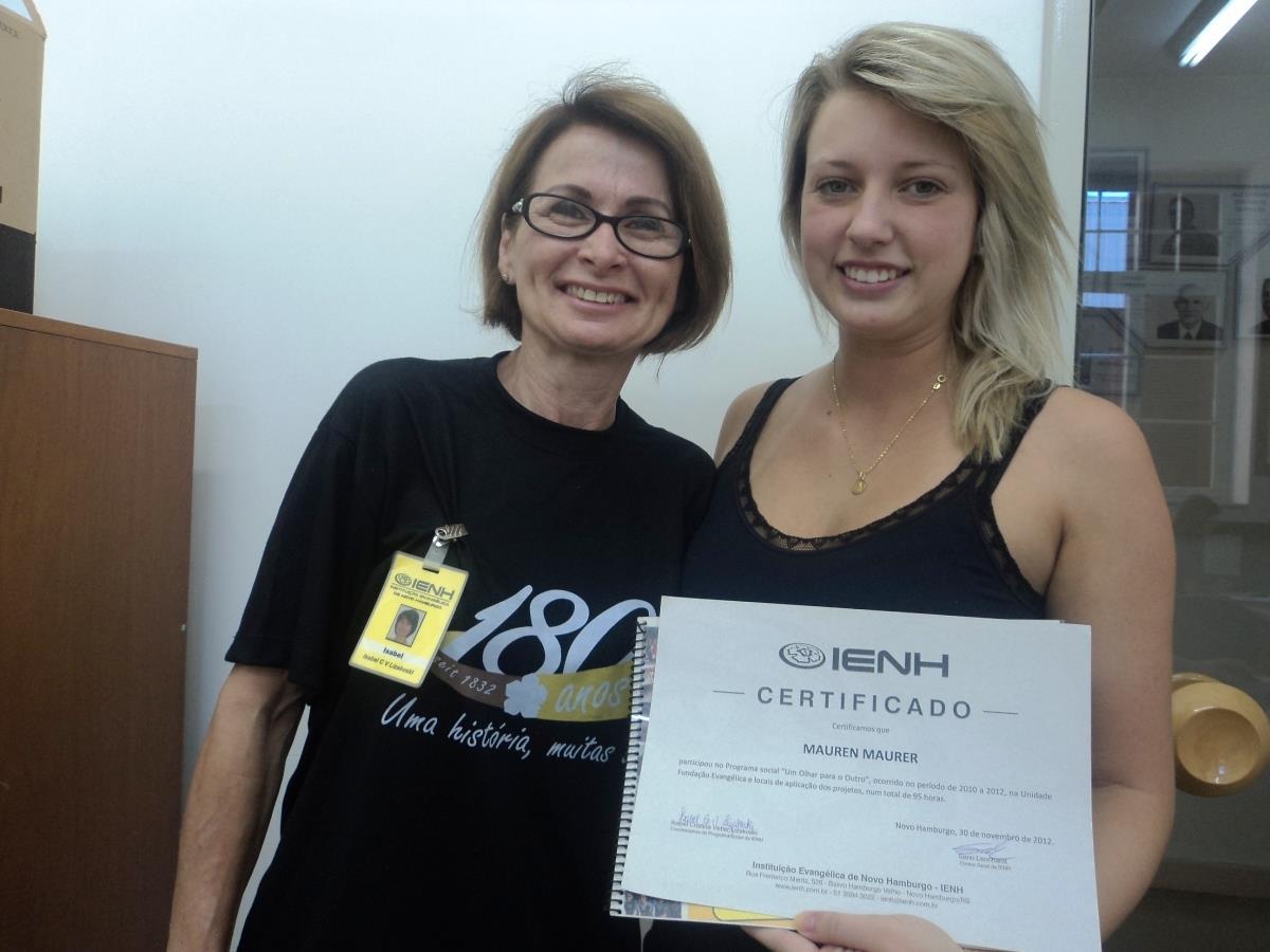 Os concluintes do Ensino Médio da IENH – Unidade Fundação Evangélica receberam, no dia 30 de novembro, os certificados de participação e um livro com os artigos dos projetos socioambientais do Programa Um olhar para o outro.