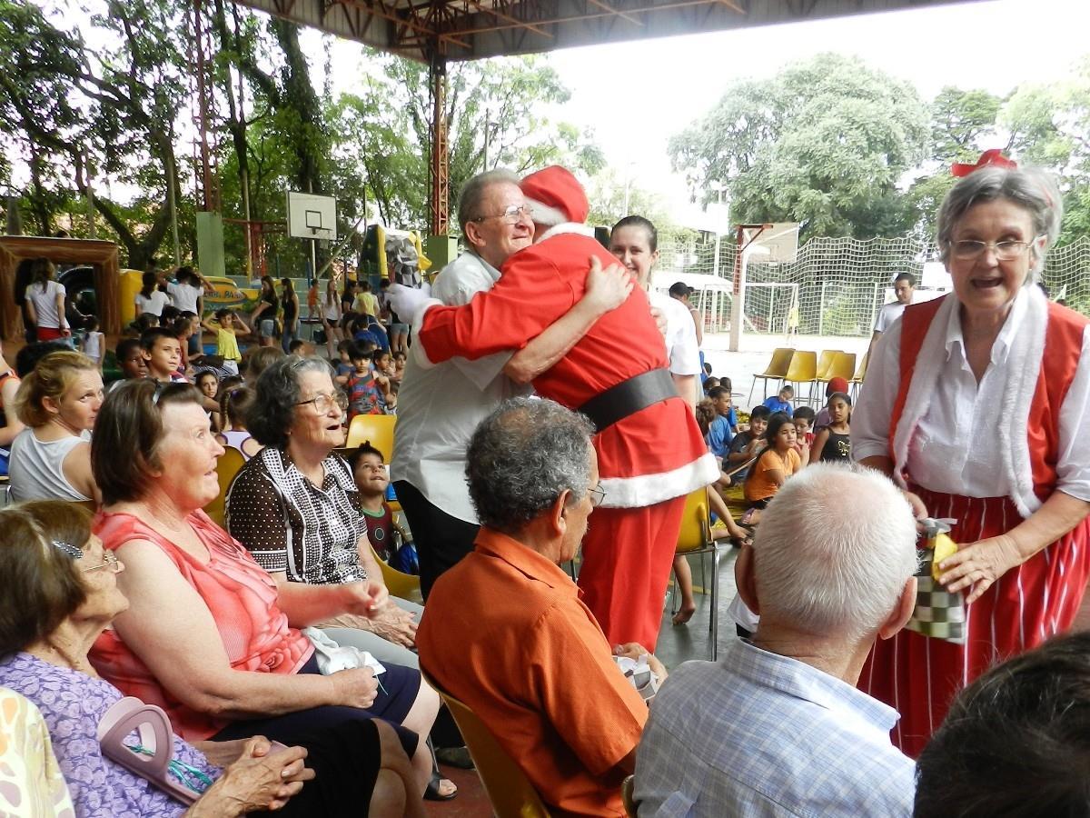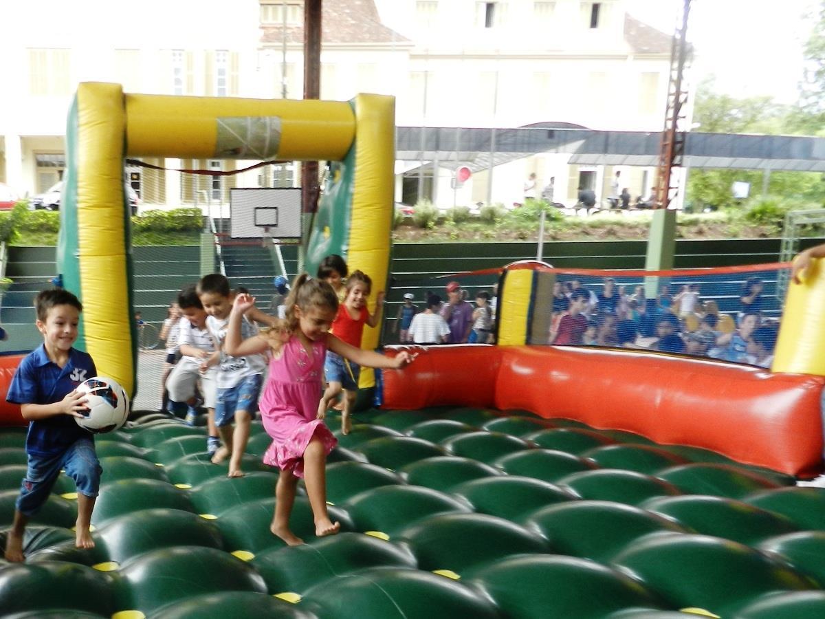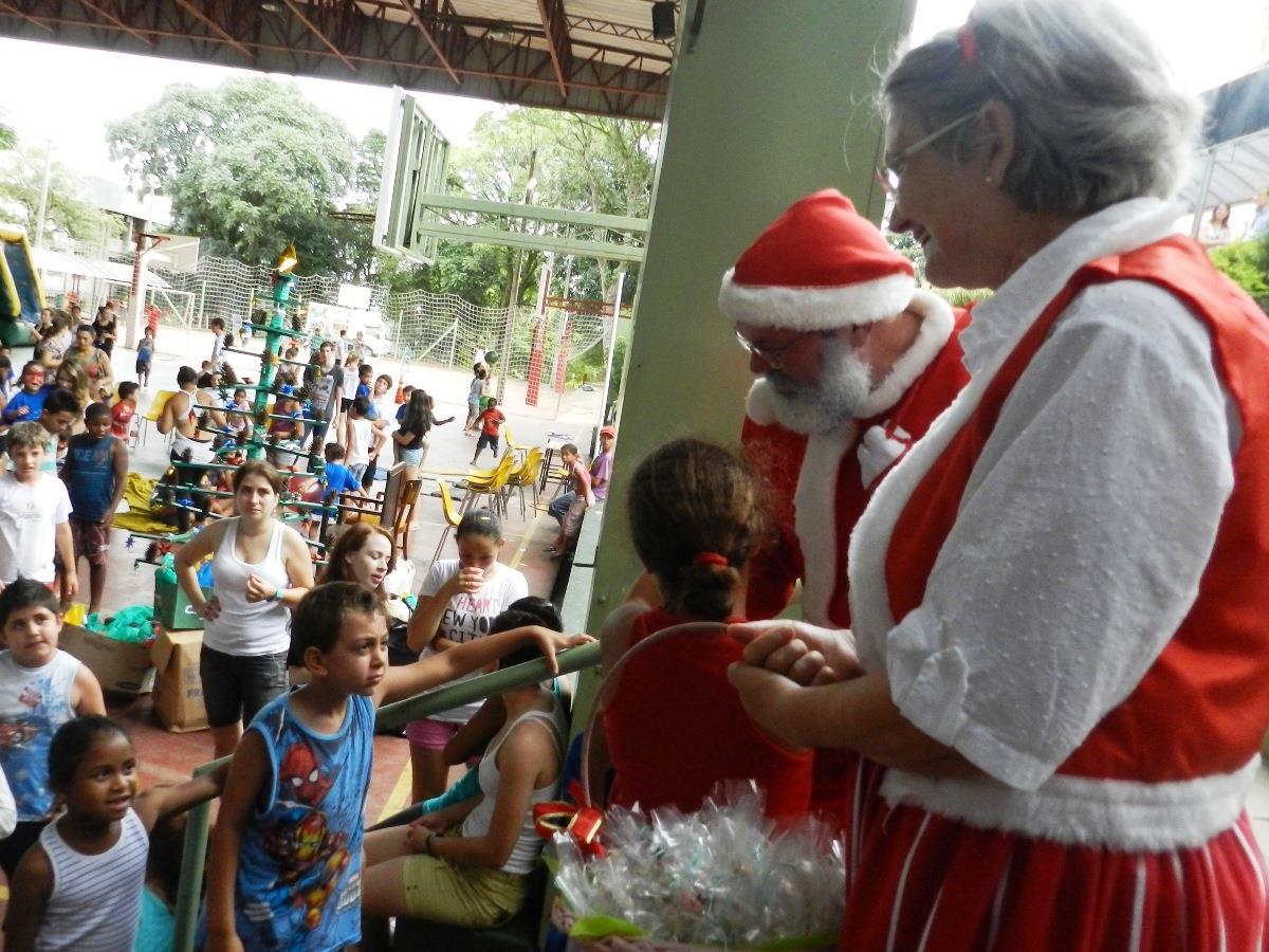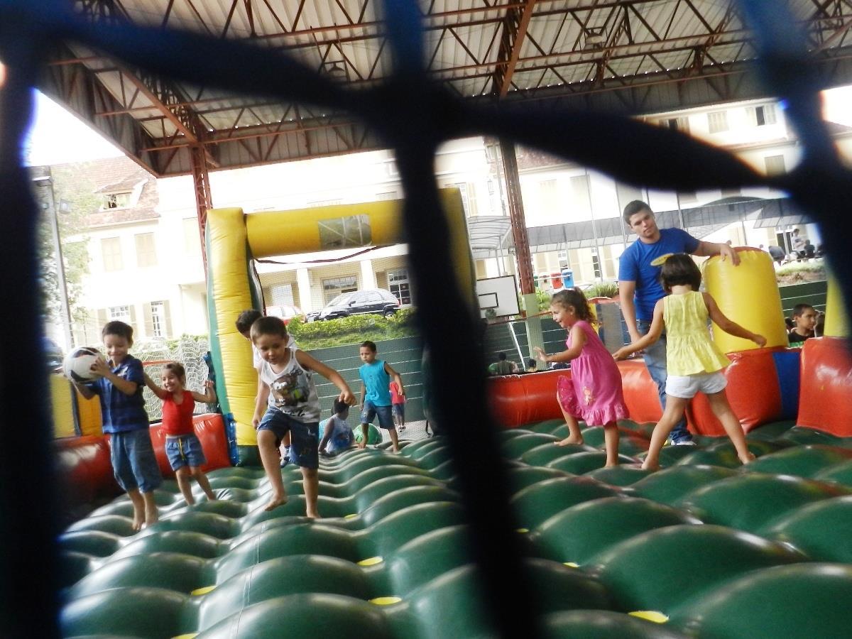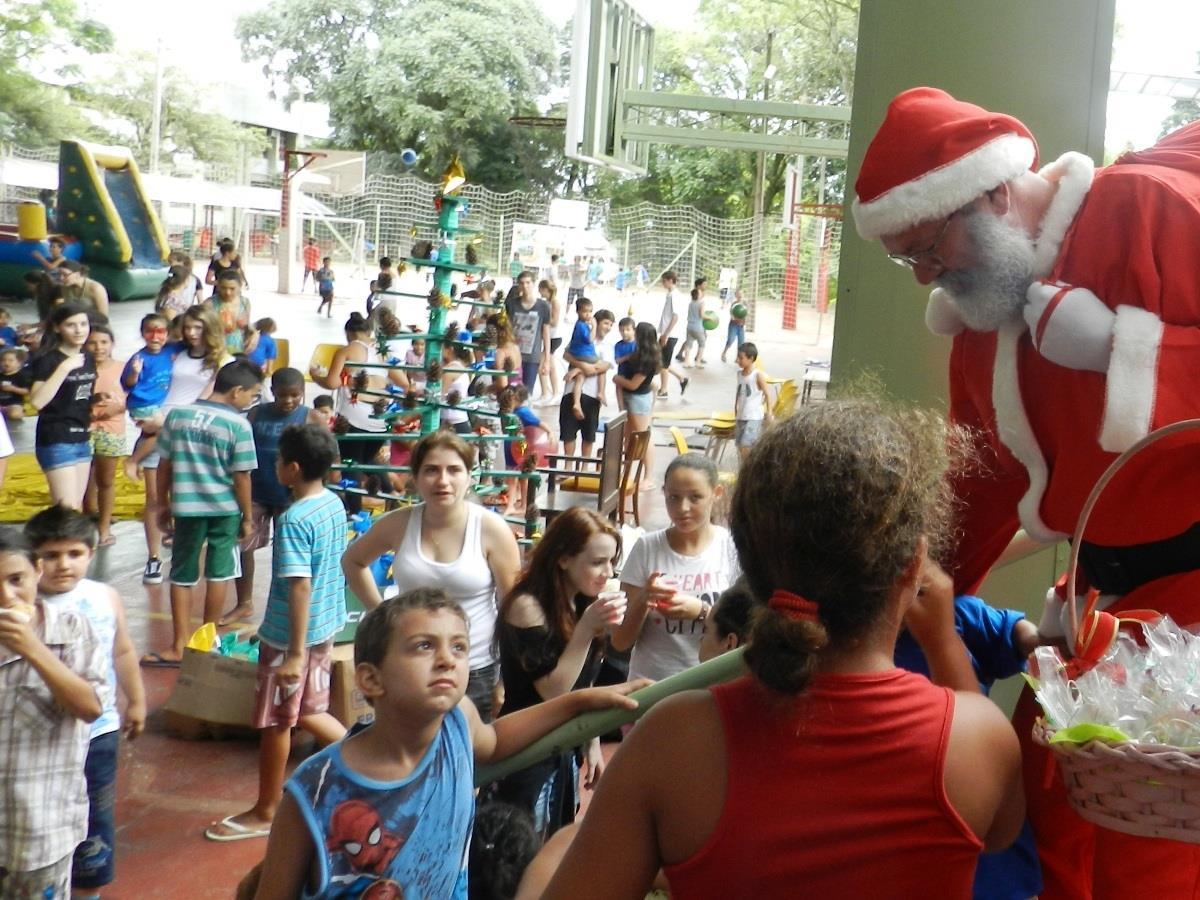 Logo após esses momentos, as crianças presentes se divertiram nos brinquedos infláveis, jogos de futebol e demais atividades disponíveis. O lanche foi seguido da presença do casal Noel que entregou presentes produzidos pelos alunos da Unidade Fundação Evangélica na Oficina do Brinquedo.