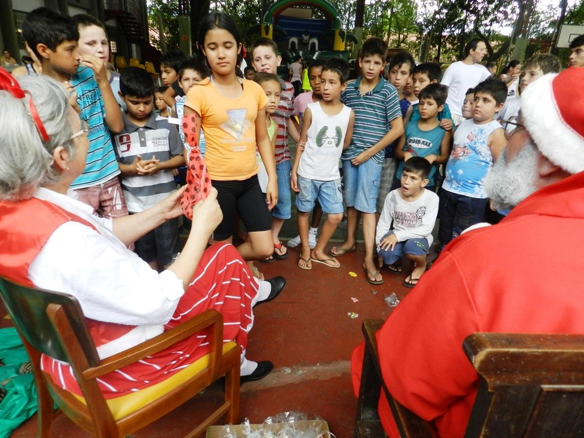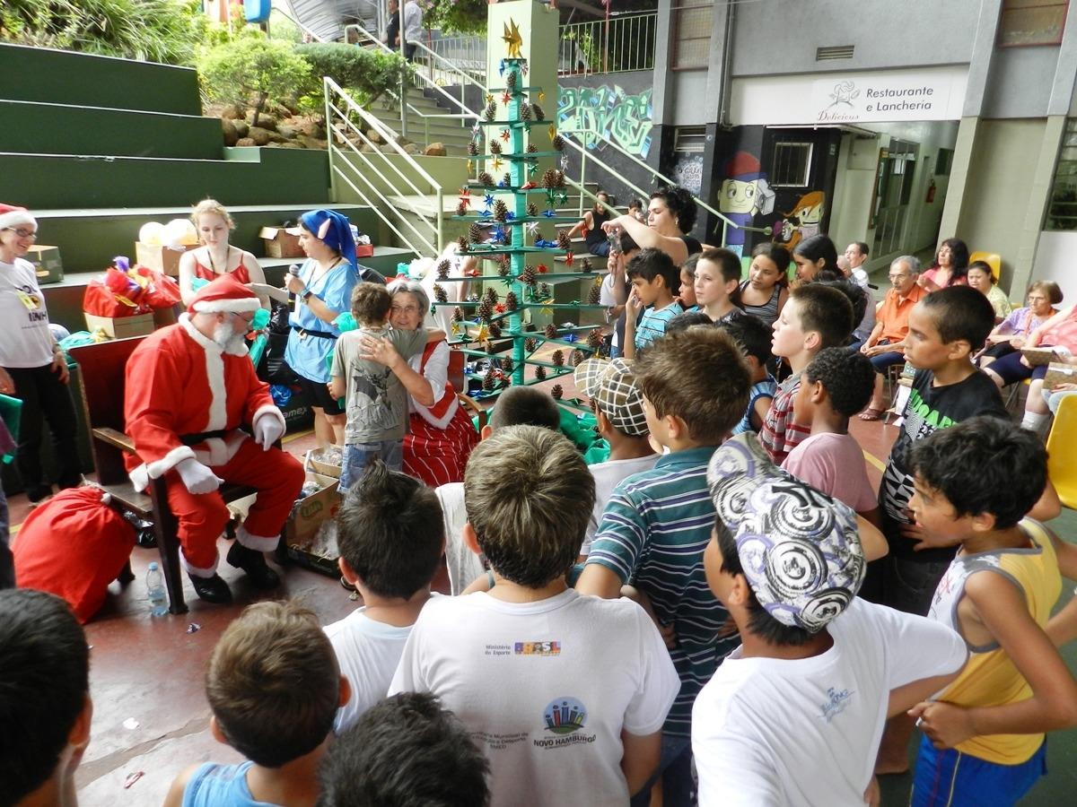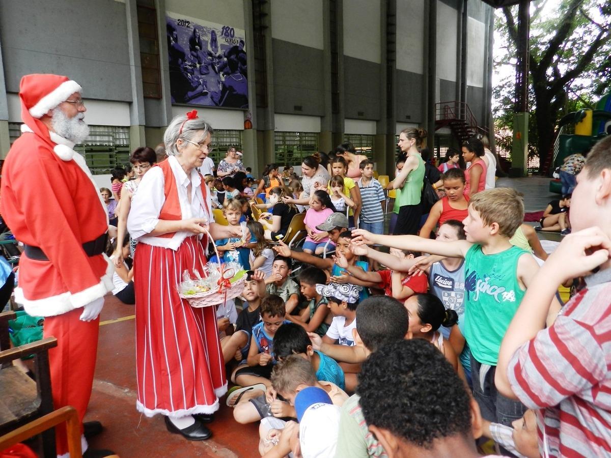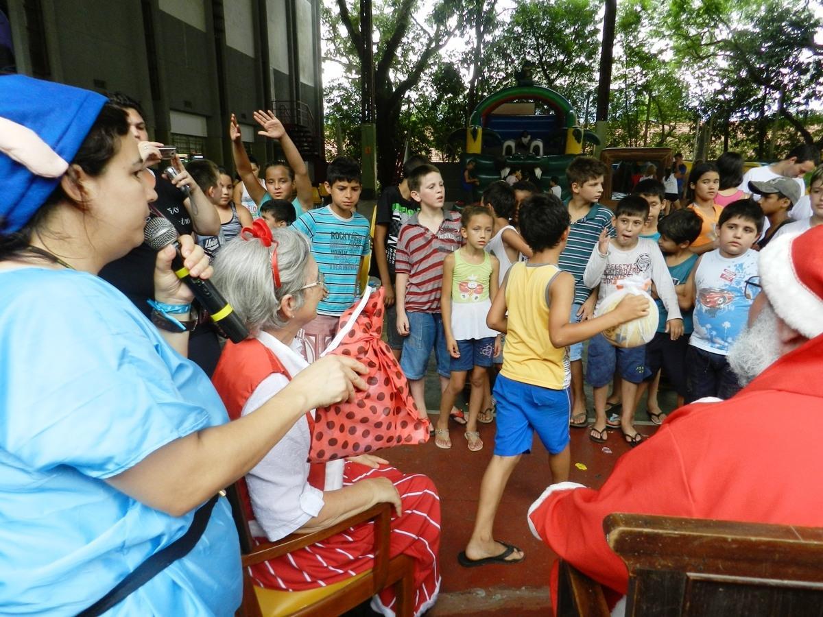 Logo após esses momentos, as crianças presentes se divertiram nos brinquedos infláveis, jogos de futebol e demais atividades disponíveis. O lanche foi seguido da presença do casal Noel que entregou presentes produzidos pelos alunos da Unidade Fundação Evangélica na Oficina do Brinquedo.