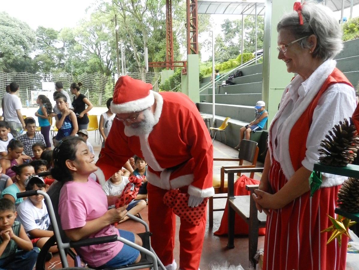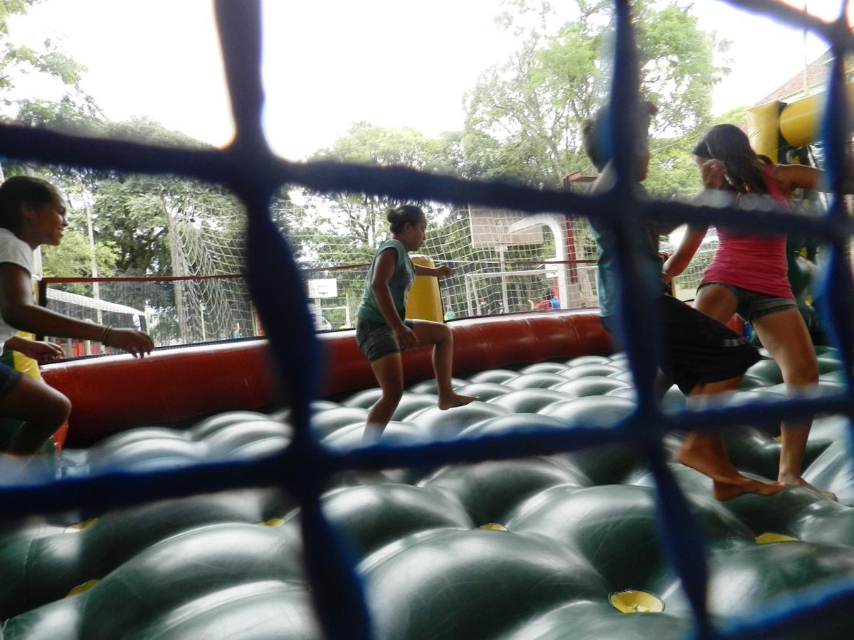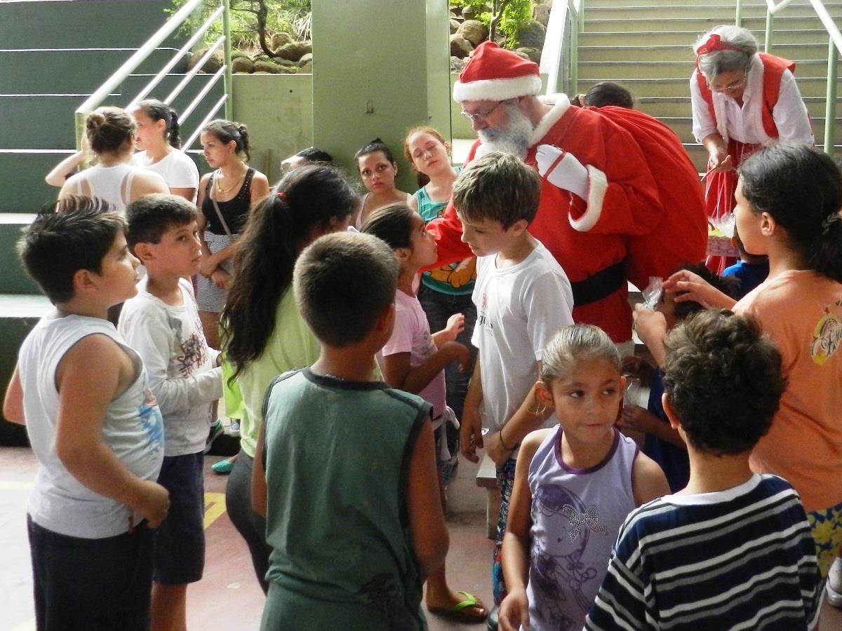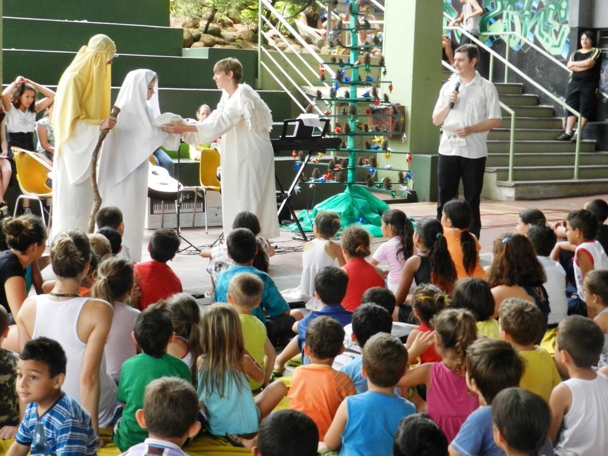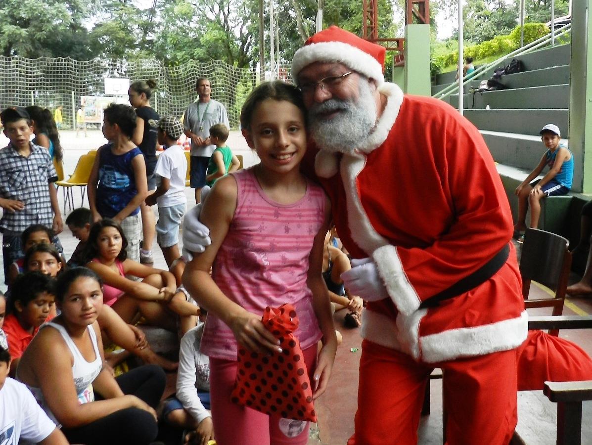 Logo após esses momentos, as crianças presentes se divertiram nos brinquedos infláveis, jogos de futebol e demais atividades disponíveis. O lanche foi seguido da presença do casal Noel que entregou presentes produzidos pelos alunos da Unidade Fundação Evangélica na Oficina do Brinquedo.