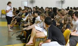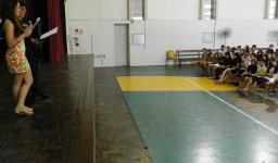 Marga também aproveitou para deixar um agradecimento especial aos professores que auxiliaram durante o evento representando o Ensino Fundamental: Daniele Bolzan, Ana Paula Machado, Ana Paula Ferraz, Fabio Ferraz, Rosália Mello, Sofia Hoffmeister de Azevedo e Nilson Reiter – que foi responsável pela elaboração de recados e organização do ambiente com os alunos através de uma apresentação de power point. Os estudantes que conduziram o protocolo foram: Paola Oliveira (8ªA) e Gregory Strelow (8ªC).