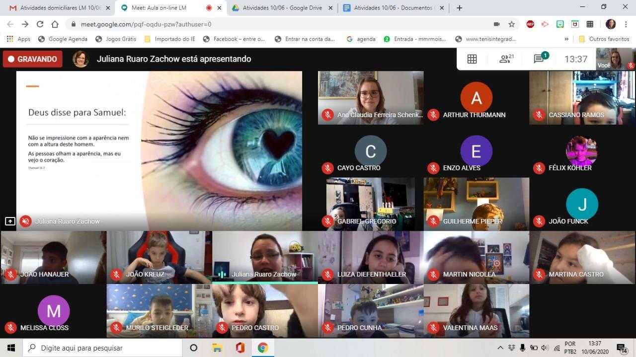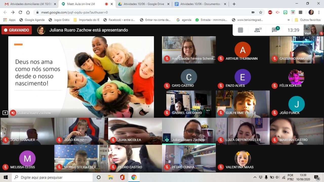 “Foi uma experiência muito gratificante ouvir as crianças orarem pelos seus familiares e amigos de forma on-line. Somos gratas por este momento com as crianças e precisamos continuamente fortalecer os nossos vínculos de amor, paz e alegria”, destacam Juliana e as Professoras Simone Ledur Marks, Janete Cristina de David Rodrigues e Ana Cláudia Ferreira Schenkel.