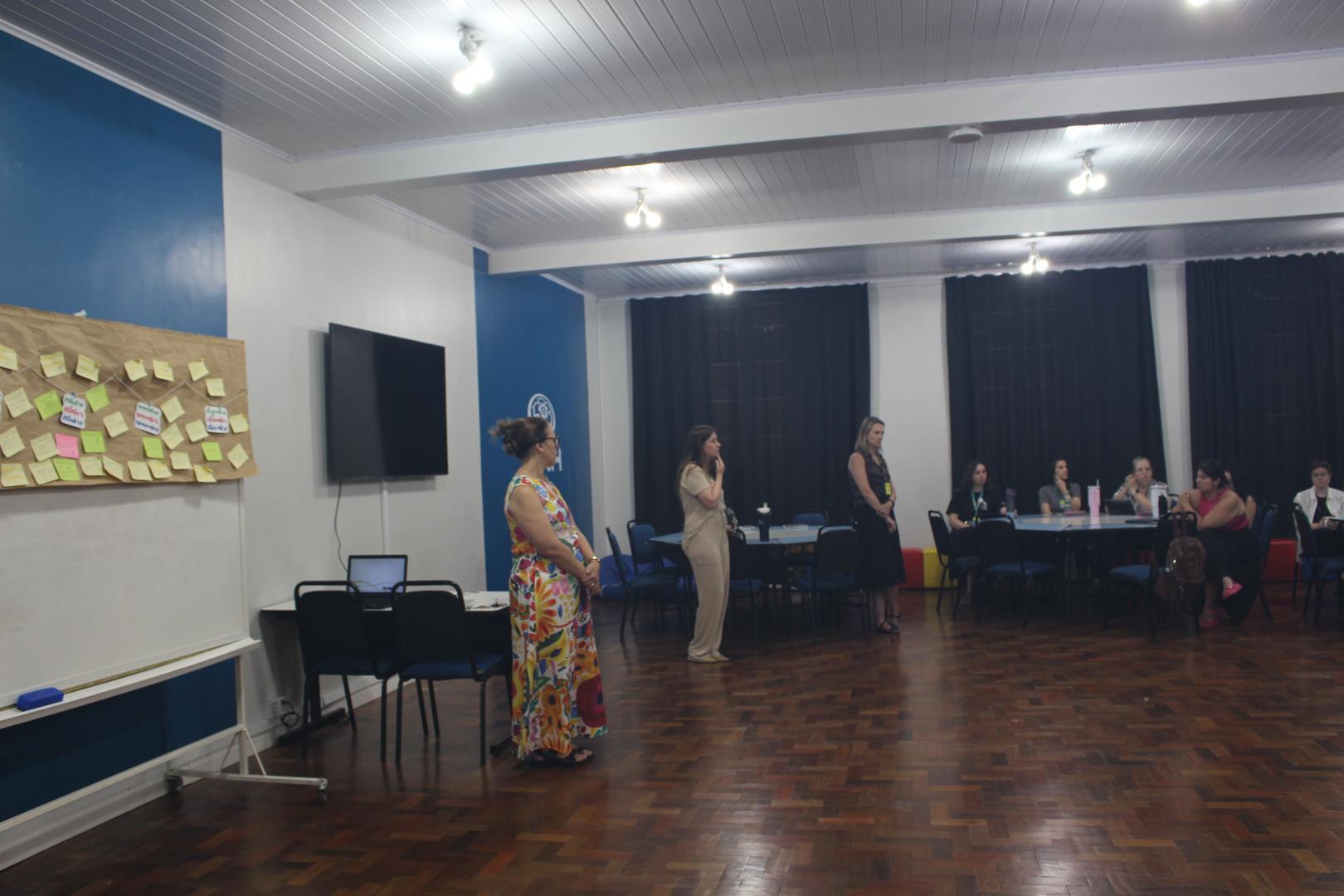 De forma criativa, os professores, organizados em grupos, apresentaram uma sinopse de filme para contar os principais acontecimentos, vivências e atividades desenvolvidas ao longo de 2025. A dinâmica estimulou a troca de ideias, o olhar colaborativo e o reconhecimento das construções realizadas durante o ano.
