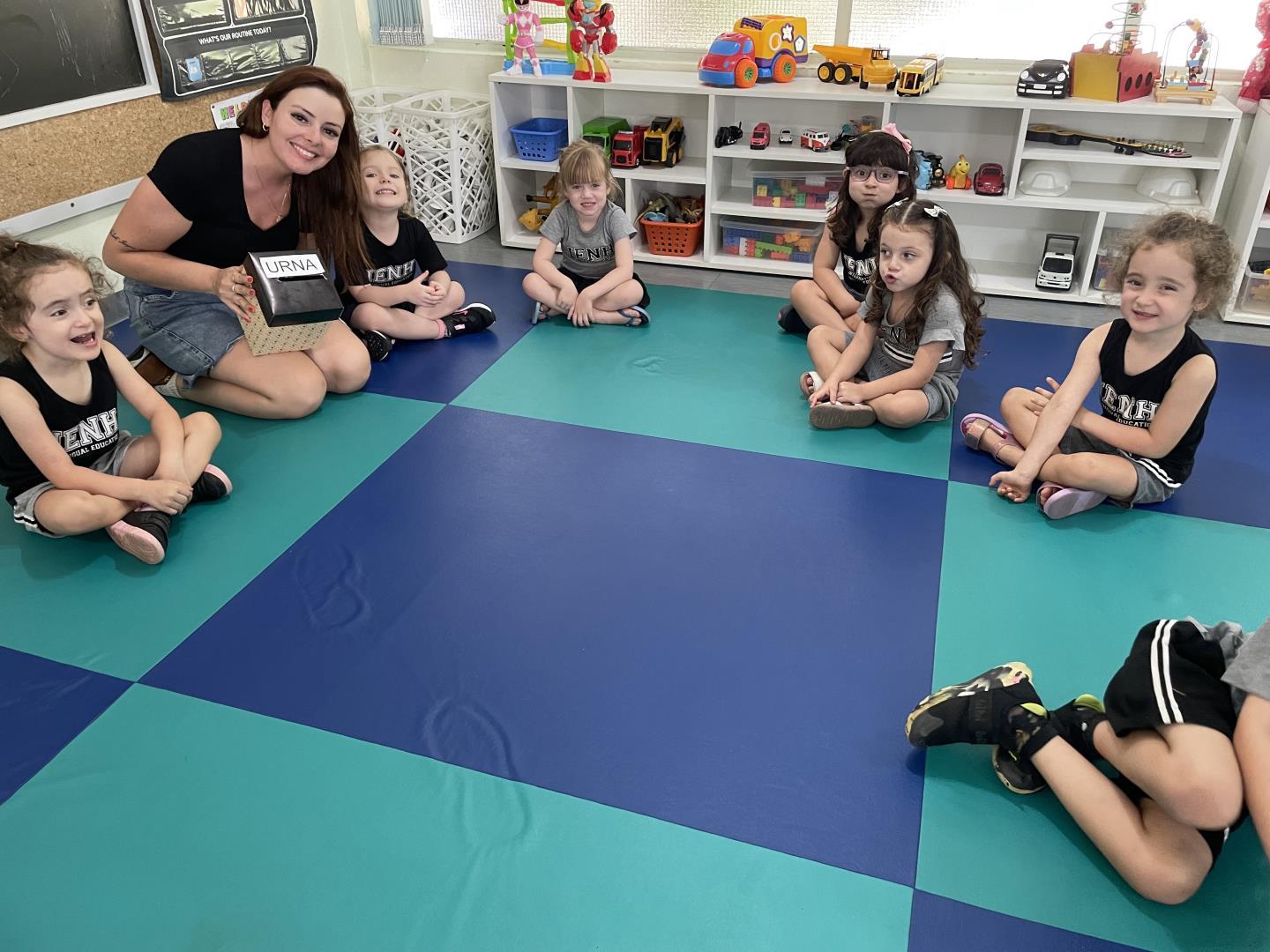 As turmas da IENH - Unidade Oswaldo Cruz participaram, no dia 8 de dezembro, de uma votação para definir o nome do espaço onde ficam as tartarugas da escola. Cada turma registrou seu voto entre três opções: Casa do Casco, Toca da Tartaruga e Turma do Casco.