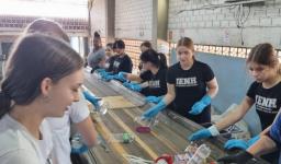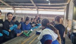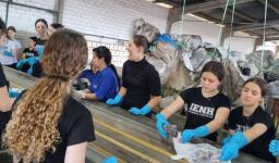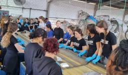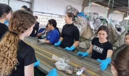No local, as colaboradoras Scheila Gabriela Sanches dos Santos e Karen Emilly Brum apresentaram todos os processos de separação dos resíduos, desde a coleta dos caminhões, seleção na esteira, separação em fardos e destinação para empresas interessadas no reaproveitamento dos materiais.