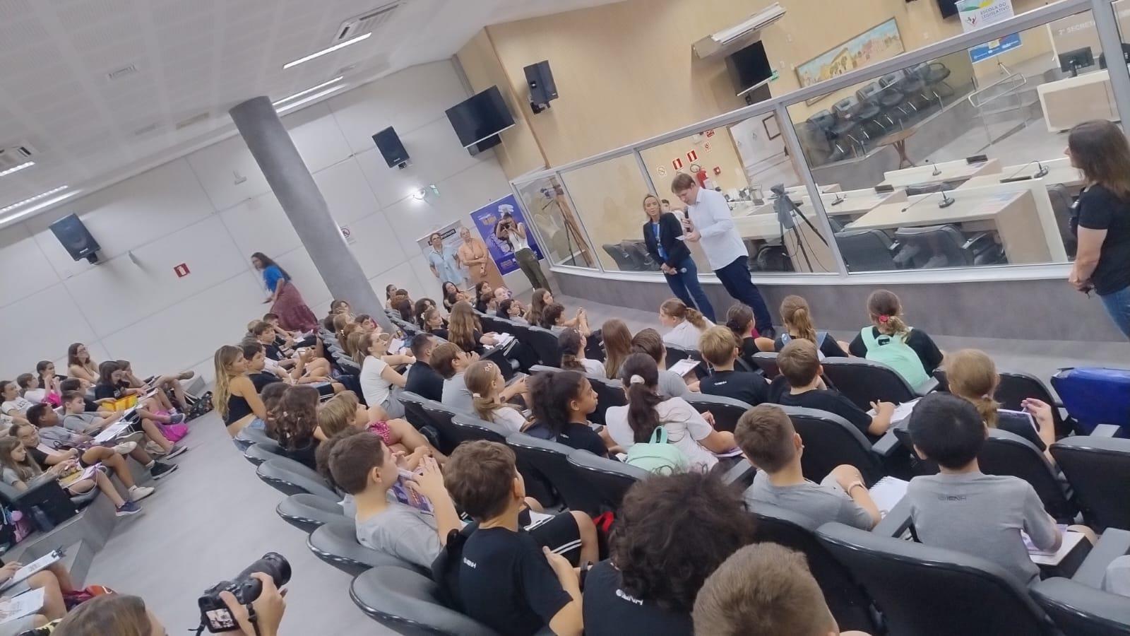 A professora da Unidade Pindorama, Edilaine Lopes, destacou a relevância da experiência: “É a materialização de uma teoria estudada em sala de aula, porque, hoje, aqui, escutam os vereadores e servidores explicarem como tudo funciona. A vida como ela é. A realidade extrapolando o mundo escolar. Os estudantes do 5º ano ainda precisam do concreto, do real, para a aprendizagem efetiva. Nós sempre falamos sobre cidadania, direitos e deveres dentro da escola. E, durante a palestra, eles tiveram a prova de como funciona na realidade”, apontou.