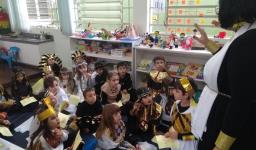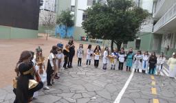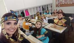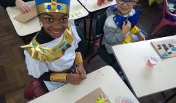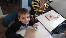 Além do aprendizado, a prática trouxe um momento lúdico para os estudantes: durante a realização, eles estavam caracterizados de Egípcio/Egípcia, inspirados na história do antigo Egito.