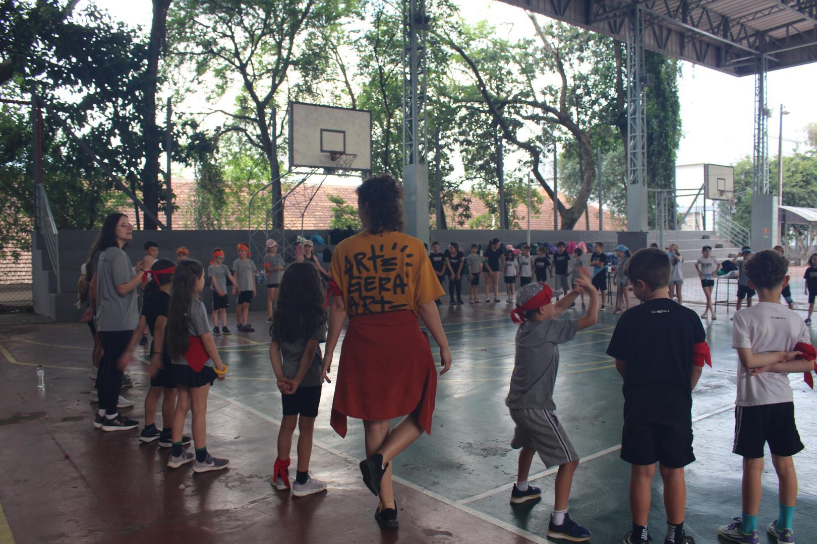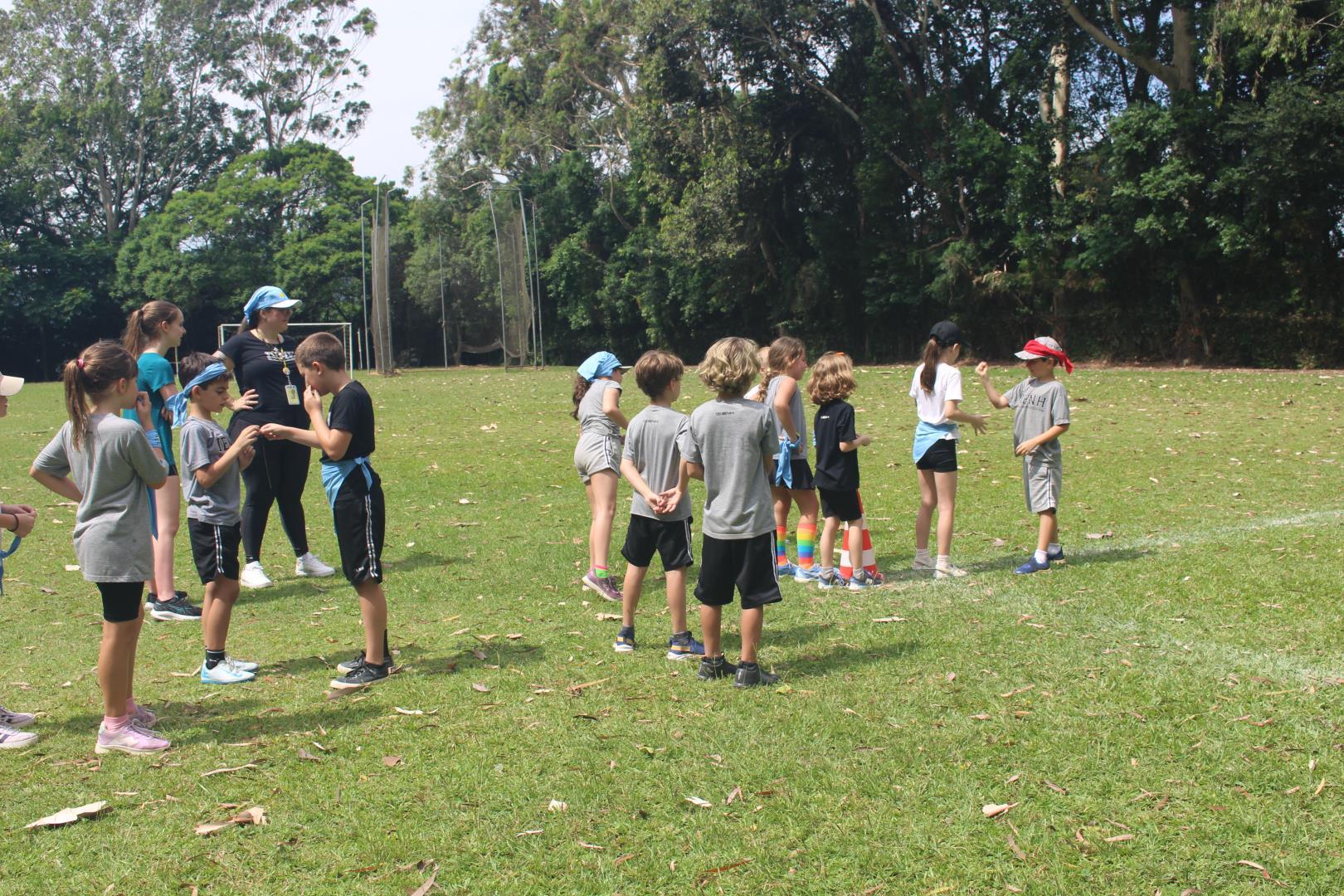 As turmas utilizaram as quadras cobertas e o campão para participar de uma gincana com atividades esportivas típicas de países de língua inglesa, ao mesmo tempo que praticavam o idioma. Na gincana, eles foram divididos em grupos, identificados por cores e, além disso, contaram com a ajuda dos estudantes do 3rd Grade do Ensino Médio da IENH – Unidade Fundação Evangélica.